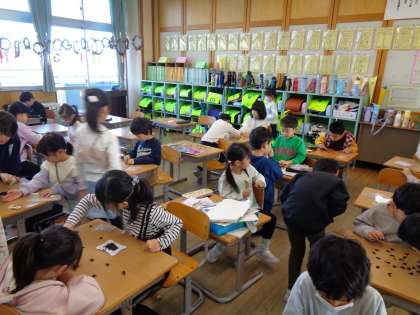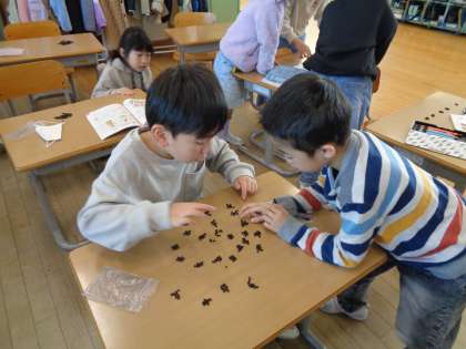 たくさんとれた朝顔の種の数え方について考えました。一粒一粒か数えようとする子。2468と、2飛びで数えようとする子。いろいろな数え方があっていいのですが、やはり・・・子供たちは「10のまとまり」をつくって、協力して数えていました。一番多い子は、なんと270粒以上も収穫があったようです。