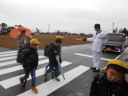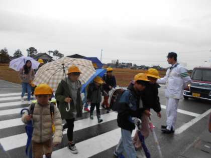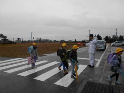 昨日、学校北側に横断歩道の白線がひかれました。真っ白でピカピカの線です。