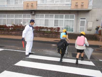 宮野っ子の安全な横断のために、地域の皆様が以前から要望されていました。とうとう実現です。また、今朝から「年末の交通安全県民運動」も始まり、駐在さんも登校を見守ってくださいました。ありがとうございます。