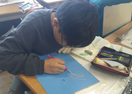 5年生 彫刻刀で川の生き物を彫ろう