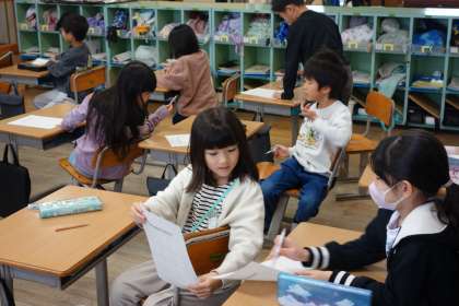今日の学活の様子です。外国語担当の先生と一緒に外国語の学習を行いました。とても楽しい時間で、あっという間に時間が過ぎました。