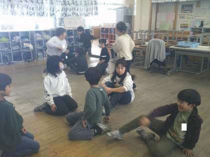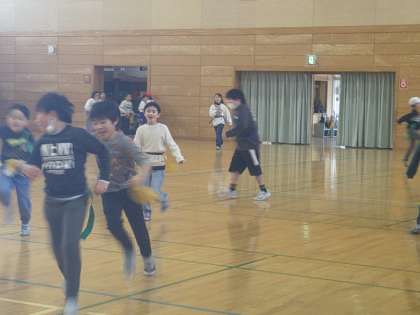 先週みんなで話し合って決めた「ハンカチ落とし」「しっぽ取り」「ドッジボール」をしました。それぞれ、担当からのルール説明の後、楽しくゲームに参加していました。