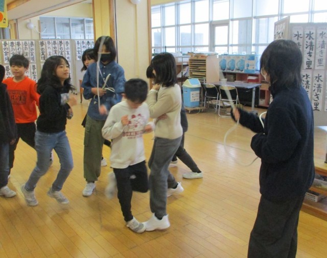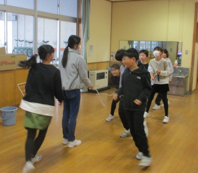 朝の時間に、自発的に8の字跳びに取り組んでいる様子が見られました。富山市の大会も近く、とてもはりきっている5年生です。