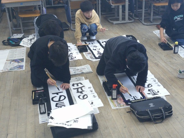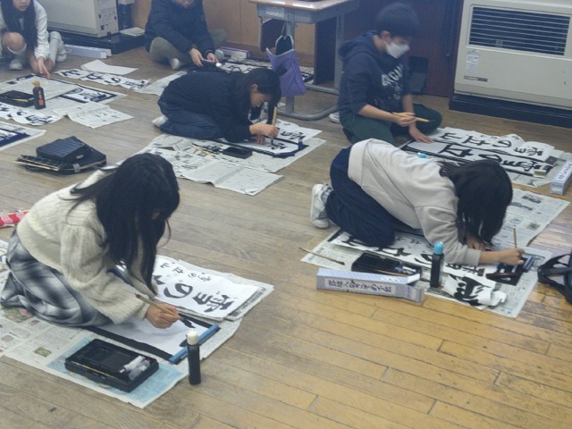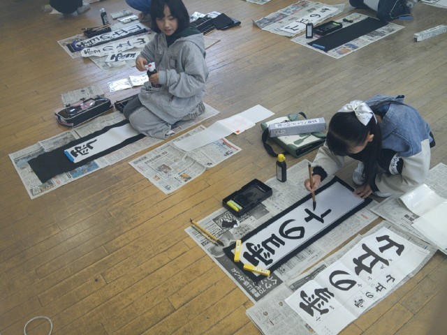 始業式後に、書初大会を実施しました。4年生は「雪の立山」を書きました。4年生一人一人が練習の成果を発揮していました。