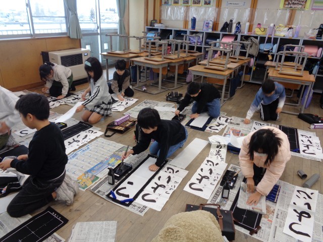 書初め大会では、冬休みの練習の成果を存分に発揮する様子がうかがえました。昨年12月に初めて書いたときよりも格段に上手になっている子ばかりで大変驚きました。子どもたちの努力がよく伝わってきました。