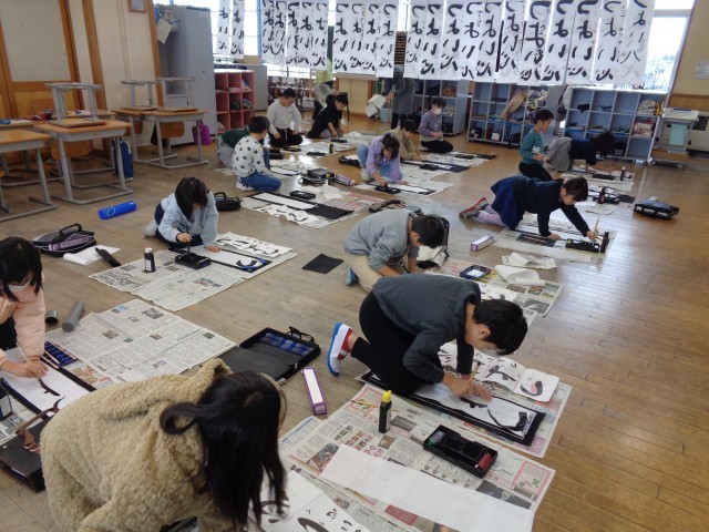 書初め大会では、冬休みの練習の成果を存分に発揮する様子がうかがえました。昨年12月に初めて書いたときよりも格段に上手になっている子ばかりで大変驚きました。子どもたちの努力がよく伝わってきました。