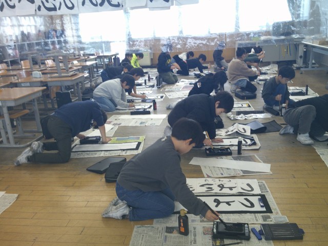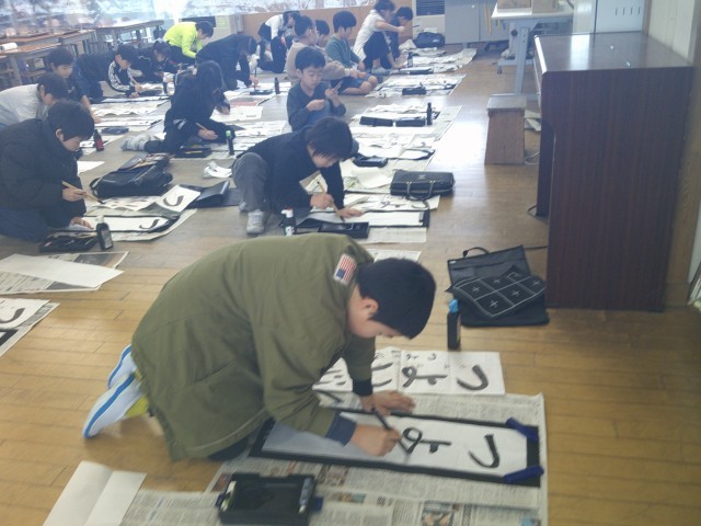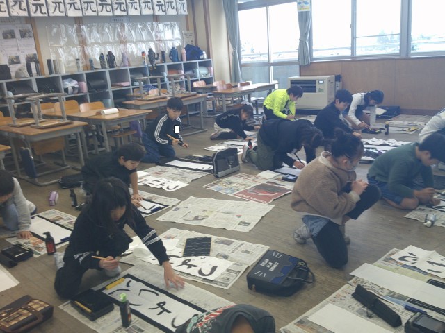 子供たちは、冬休みに家庭で練習してきた成果を発揮しようと真剣に取り組み、一字一字丁寧に書いていました。