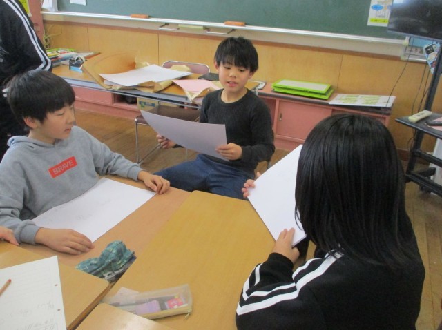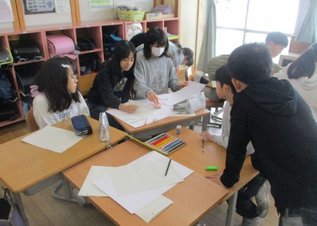 水環境についてや、生き物の特徴について調べてきたことをどのような形にしていくかグループで話し合っています。