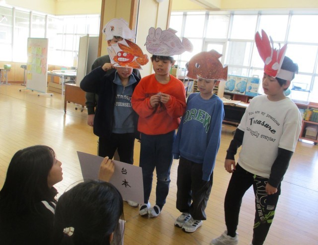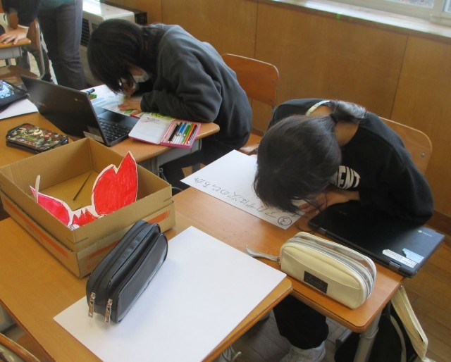 交流では、水みらいプロジェクトでやってきたことの発表を保育園児にします。熱心に準備をしている5年生です。