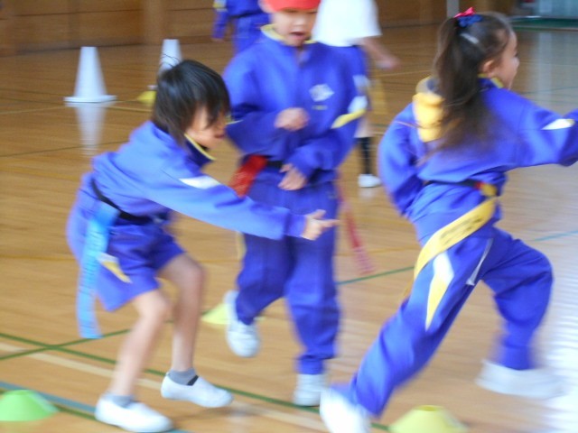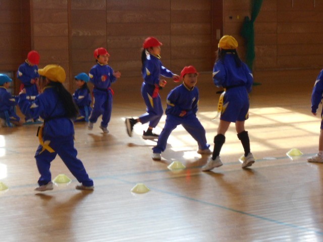 どちらに動けばよいのか、友達の動きを考えて運動しています。
