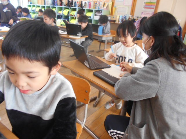 分からないことは進んで先生に教わります。活動が進んでうれしそうでした。