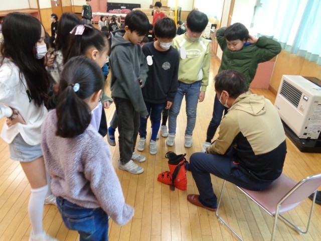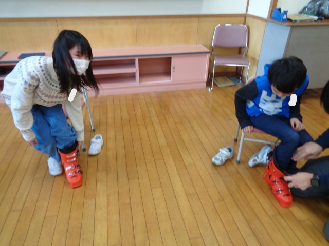 講師の先生をお招きし、スキー靴の履き方を教えていただきました。