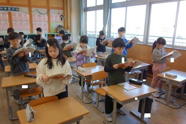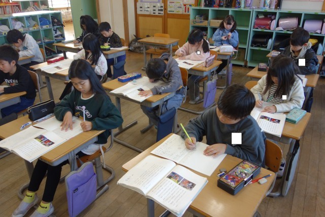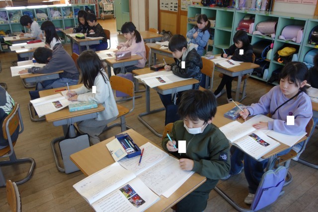 国語科の学習の様子です。説明文を丁寧に読み、必要な事柄を読み取っています。