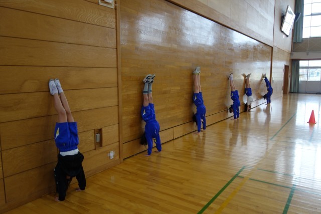 体育科の学習の様子です。最近は毎時間、壁倒立を楽しんでいます。休み時間にも練習に取り組む子供たちもいます。「できるようになりたい!」と強く思い、努力する姿はとても素敵です。