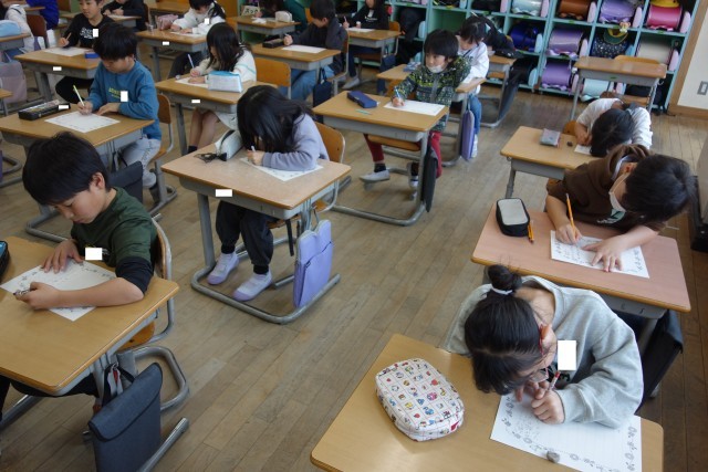 影絵鑑賞会を終えて、手紙を書いています。心を込めて感想やお礼の言葉を書く様子が見られました。