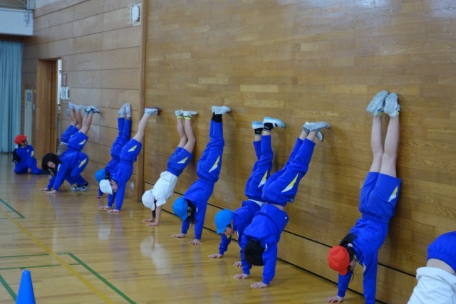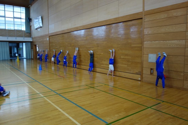 初めはほとんど出来なかった壁倒立も、どんどんできるようになってきています。