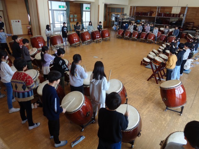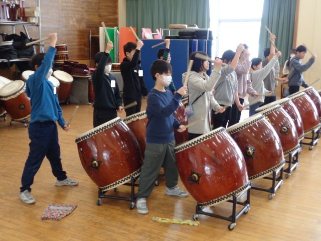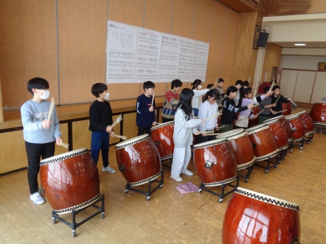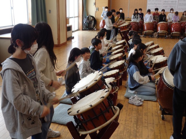 太鼓発表会が近づいてきたので、4年生で「まごころ」の練習をしました。