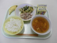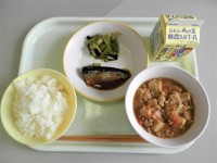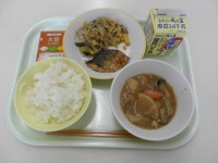 メニューは、ご飯、ししゃもフライ、しょうが浸し、肉じゃが、牛乳でした。