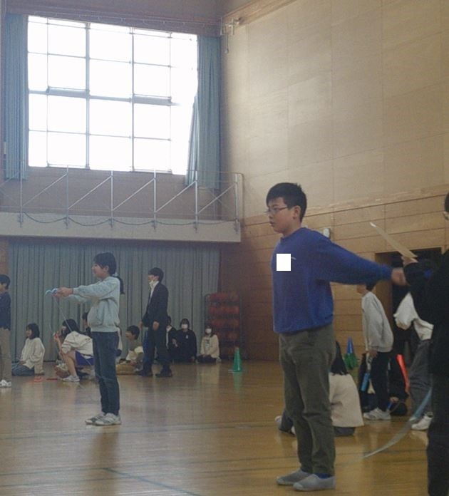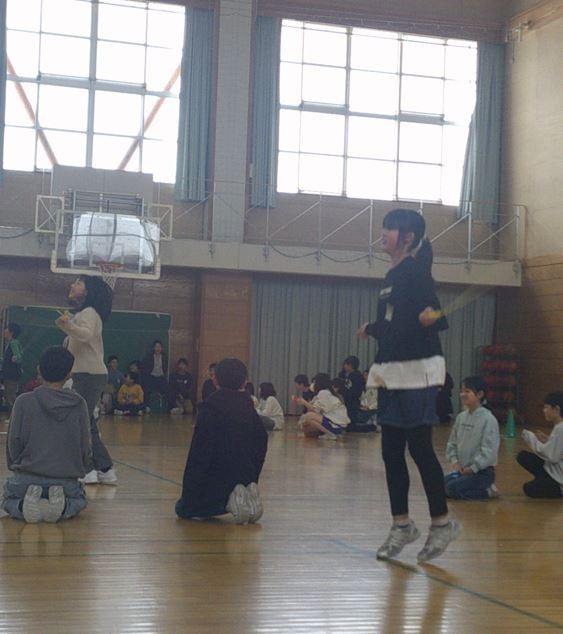 今日の昼休みに校内で短縄大会が開催され、5年生も参加しました。