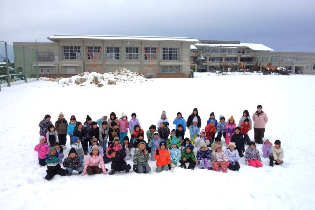 今日は、学年で雪遊びを行いました。雪上で記念撮影も。