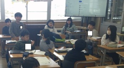 道徳の授業の様子です。10歳のプレゼントに山の頂上から見える景色をプレゼントしたお父さんのお話を基に、みんなで感じたこと、考えたことを話し合いました。