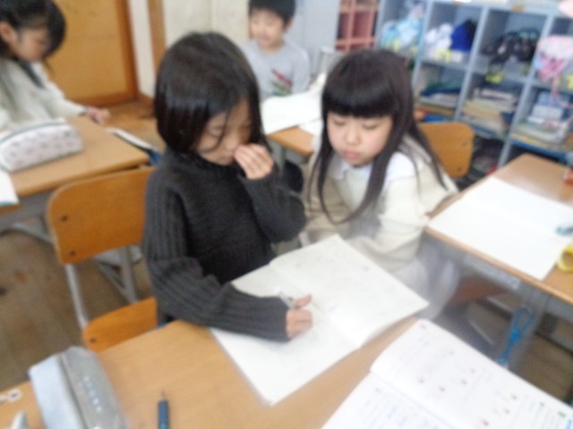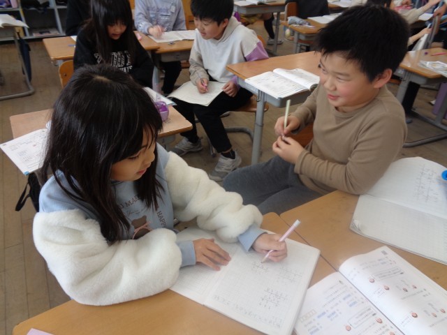 ペアの友達と、3桁の筆算の仕方を説明し合いました。