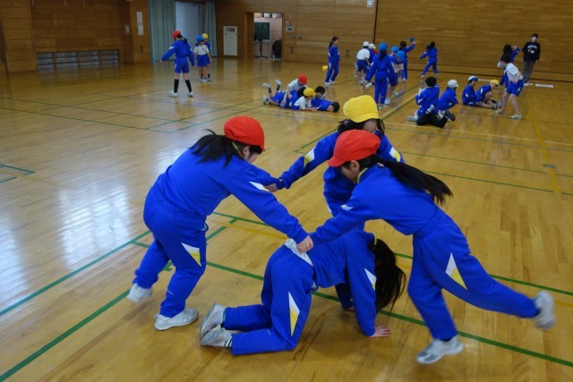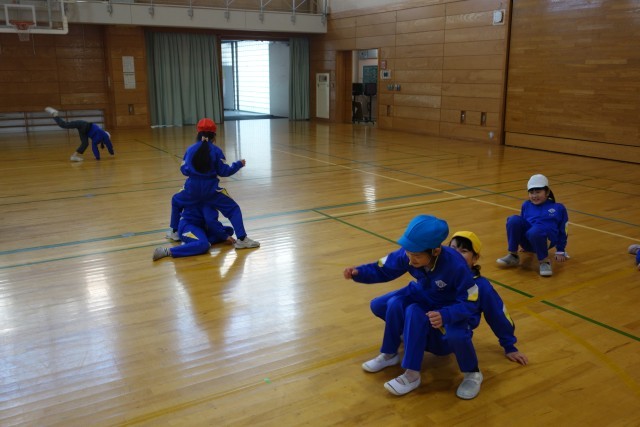 子供たちなりの発想で、お題に合わせて体を動かして表現していました。