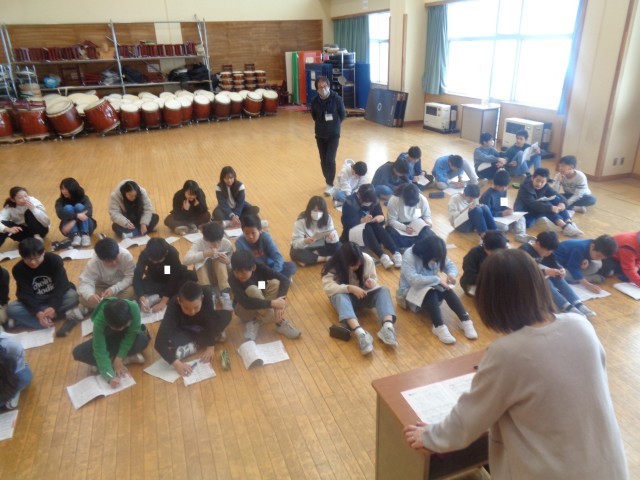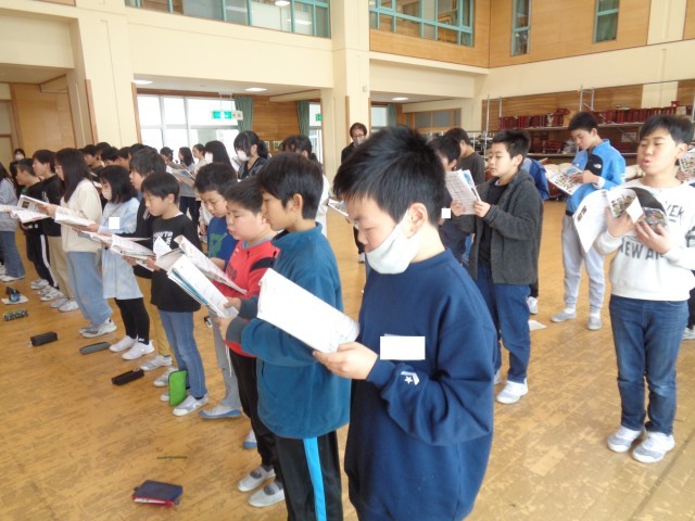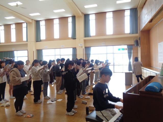 「旅立ちの日に」の学習では、指導を受けたことをすぐに直し、真剣に歌っていました。指導前と指導後では、別の歌声になっており、歌声を部屋中に響かせることができました。