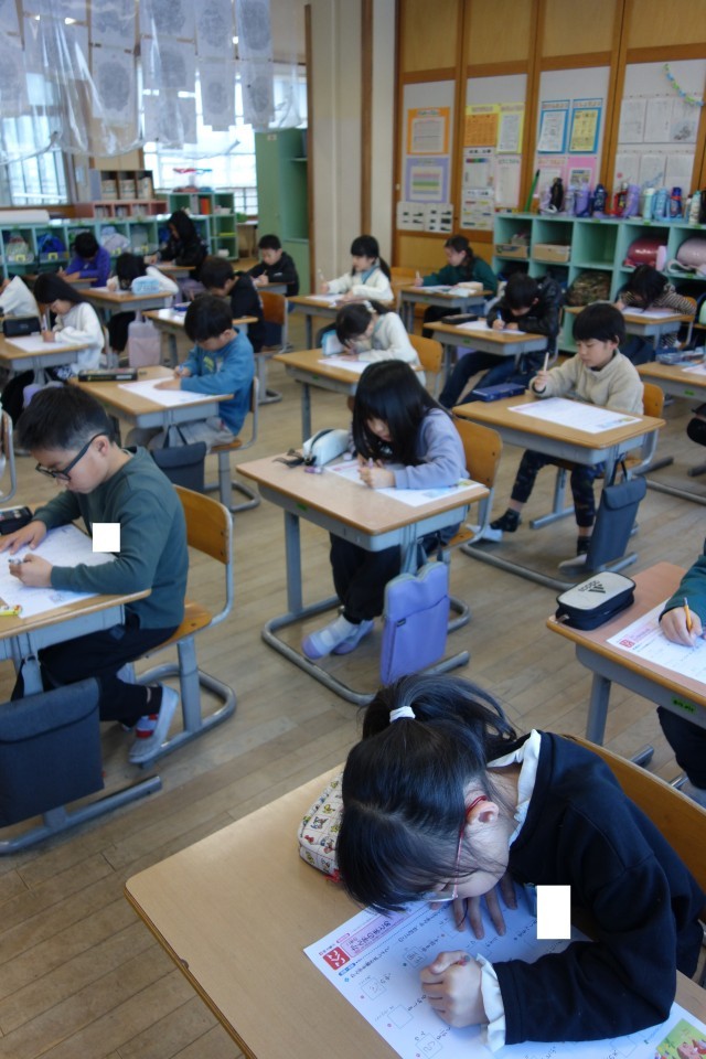 本日もテスト。集中してがんばっています。練習の成果を出すことができたようです。