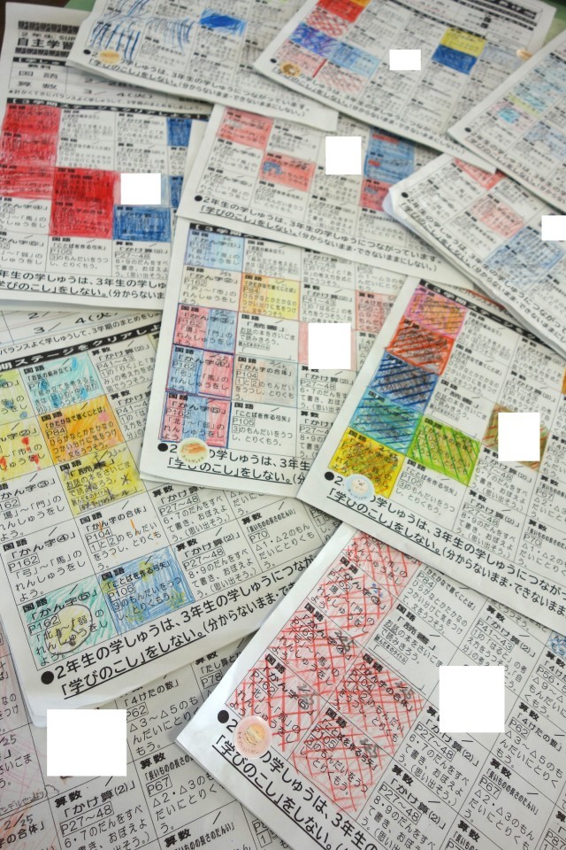 学習のたしかめテストに向けて、自主学習ノートに取り組む子供たち。学習カードをどんどん進め、3学期の復習進めています。
