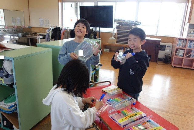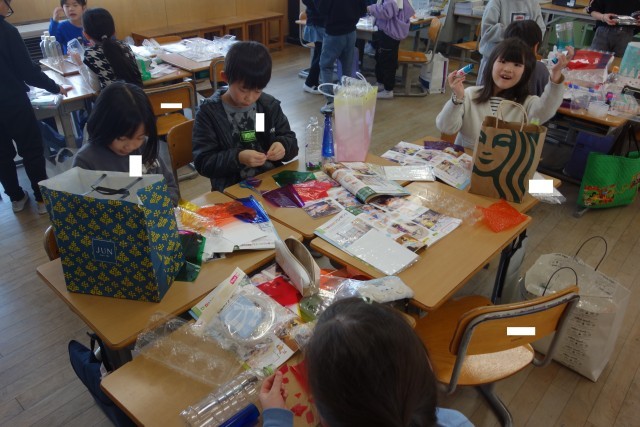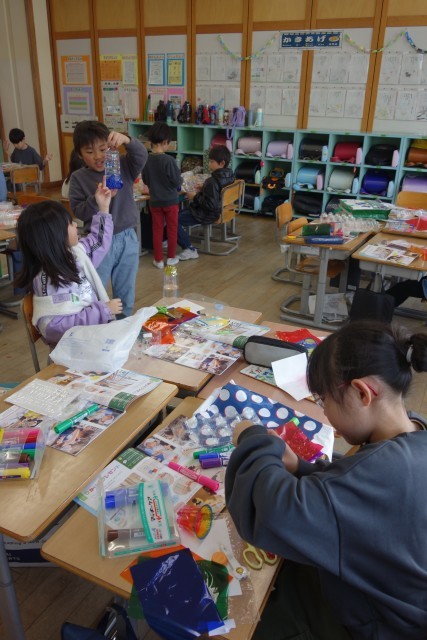図画工作科の学習の様子です。光を通すとどんな感じになるのかイメージを膨らませて取り組みました。