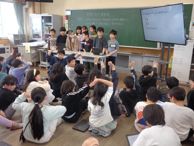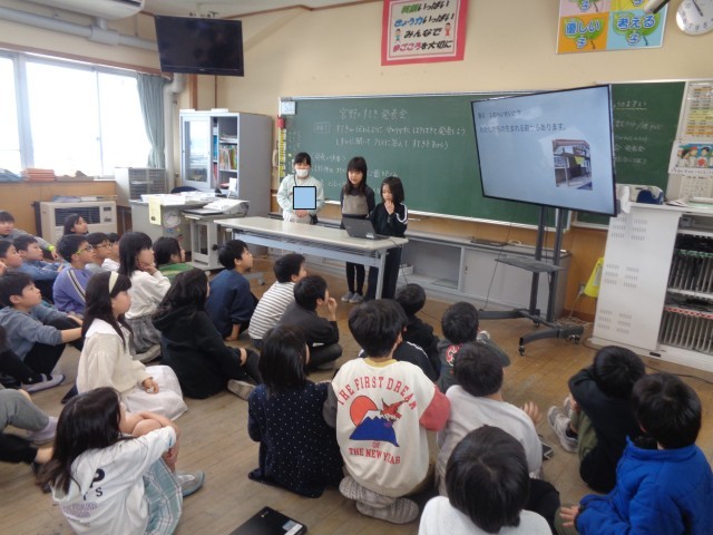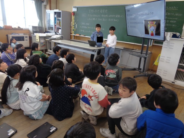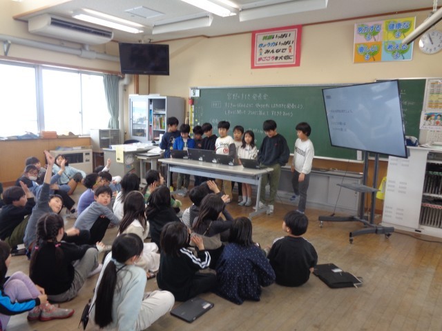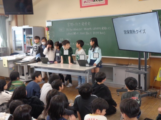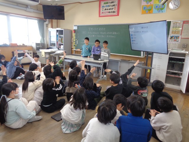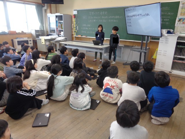 総合の学習では、それぞれが調べたことをクイズ形式にして発表しました。
