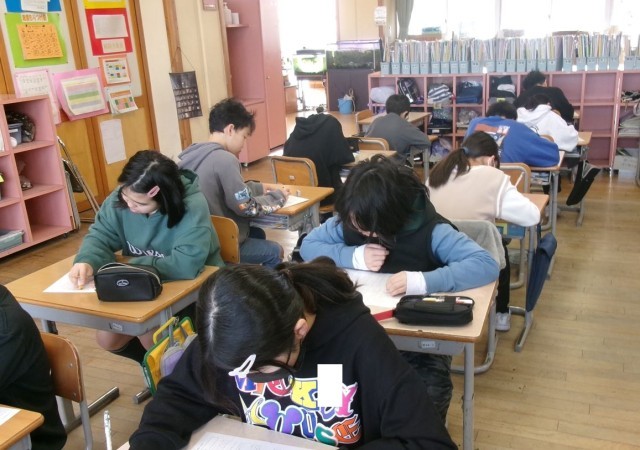 今週から家庭学習強化週間が始まっています。朝には1人で勉強する姿や友達と問題を出し合う姿が見受けられました。