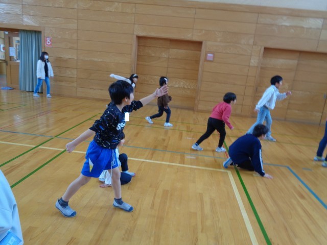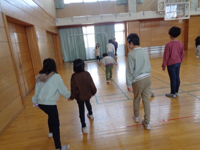 昼休みに、縦割り班のメンバーで遊びました。