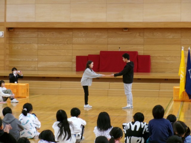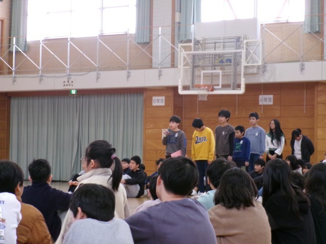 6年生から5年生へ児童会の役割を引き継ぐ大事な式「児童会引き継ぎ式」に参加しました。真剣な眼差して5・6年生を見ていました。