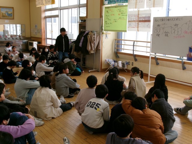 児童会引き継ぎ式で感じたこと・考えたことを学年で集まって聴き合いました。高学年への意識が強くなってきているようです。