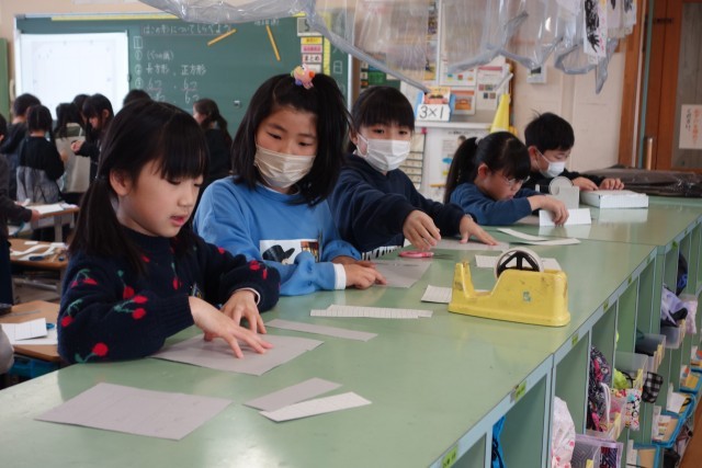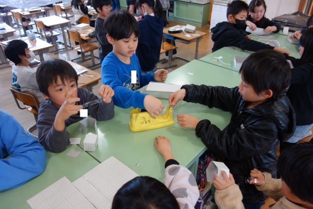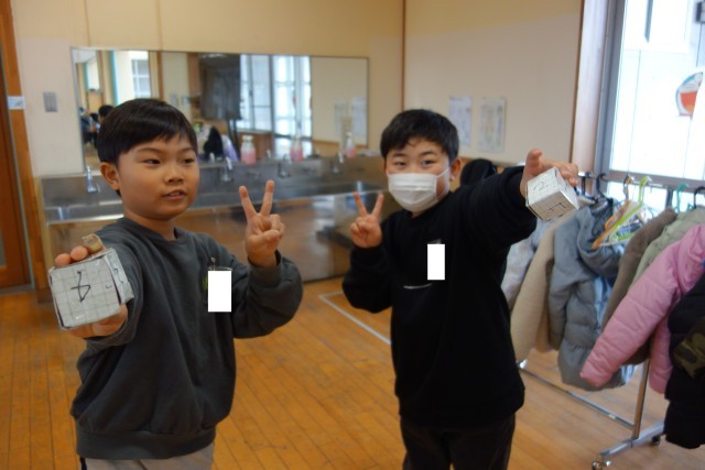 どの箱も6つの面があることを確認しました。箱ができてとても嬉しそうでした。