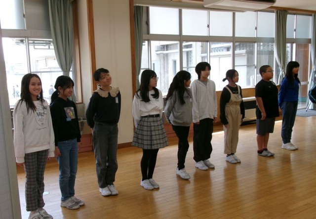 今日の昼休み、代表者児童が門出の言葉の練習を行っていました。5年生は在校生の中でも1番年上と言うこともあり、引っ張っていけるように練習を行っています。