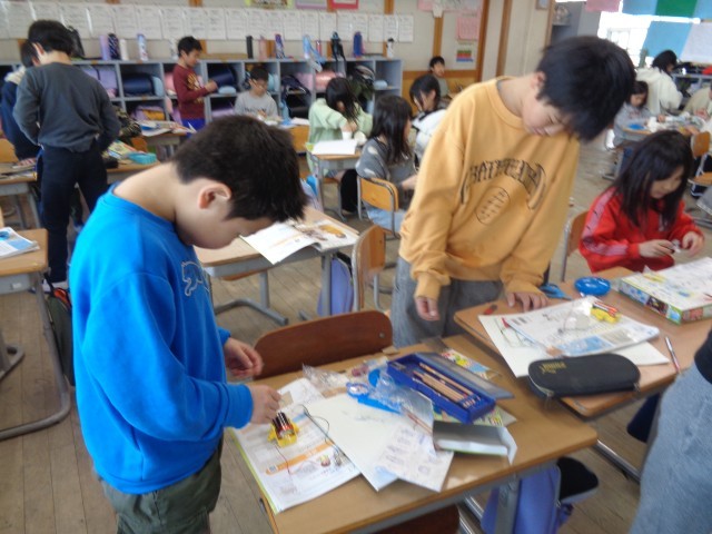 理科では、1年間で学んだことを生かして物作りを始めました。