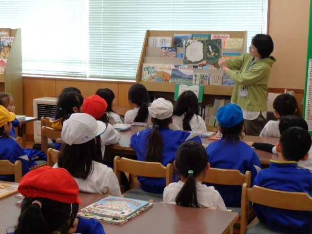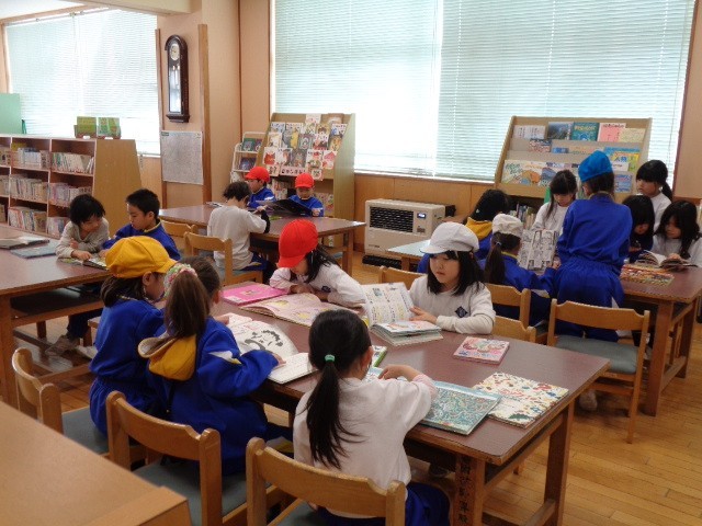 毎週、子供たちは、定期的に図書室を訪れ、たくさんの図書を借りています。またその折に、学校図書館司書の先生に読み聞かせをしていただき、心を耕しています。