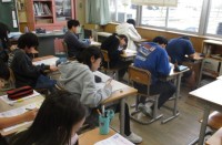 今日の給食は、学年みんなで食べました。残りわずかな給食を楽しんで食べています。