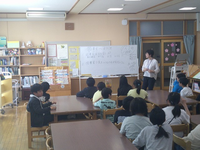 図書オリエンテーションを行いました。図書室の使い方を改めて教えていただきました。