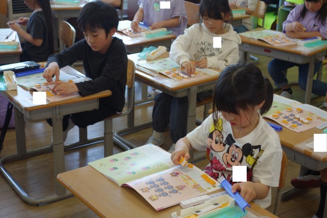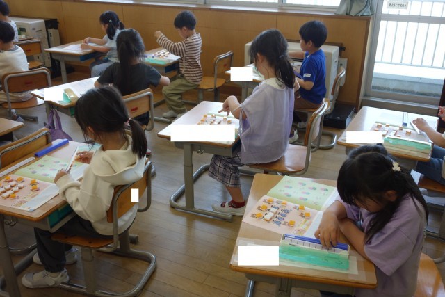 2組の算数科の学習の様子です。ブロックを使って、数を確かめました。
