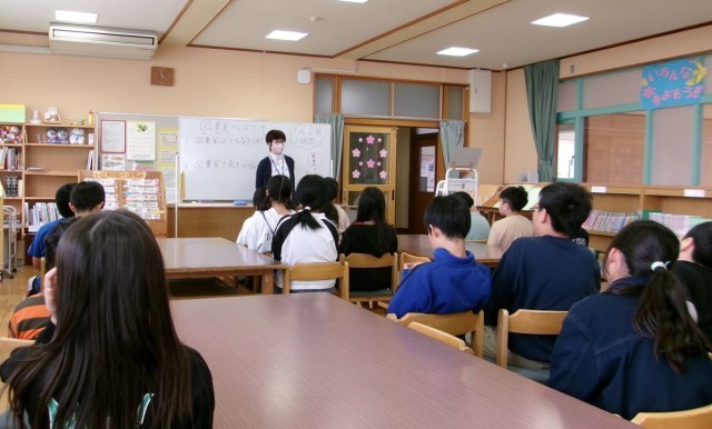 今日は図書室でオリエンテーションが開かれました。司書の先生の話をよく聞き、どんな本を読もうか心をふくらませている様子でした。