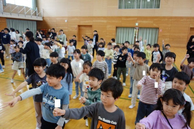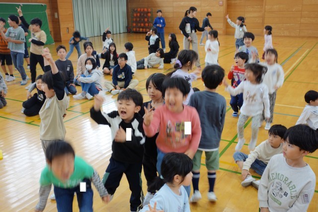 児童総会の後には、全校でじゃんけんゲームで盛り上がりました。楽しそうな1年生でした。