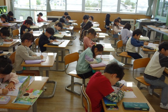 ひらがなドリルを使って、丁寧に練習を進めています。一生懸命に取り組んでいます。