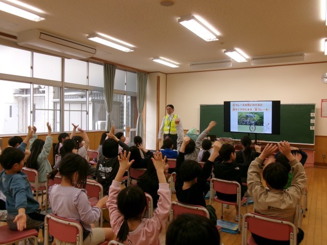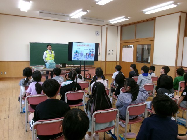 1組は、最初に、自転車に関する交通安全のお話を聞きました。