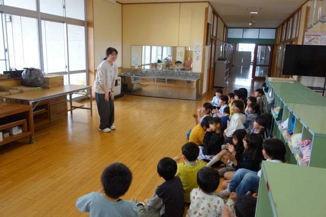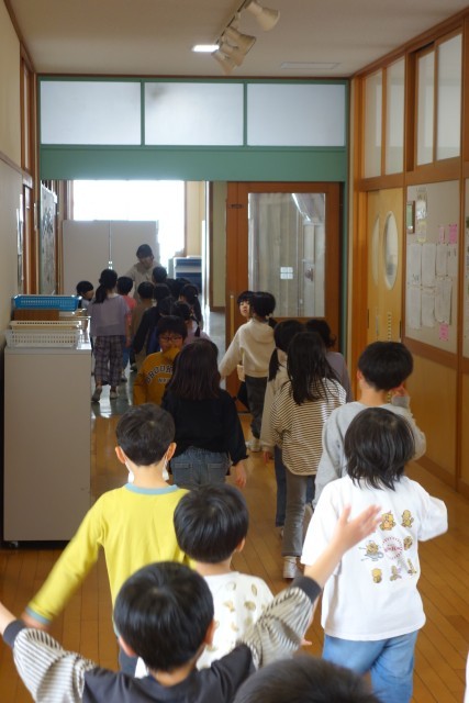 生活科の学習の様子です。学校探検に出かける前に、担任の先生と約束をしています。