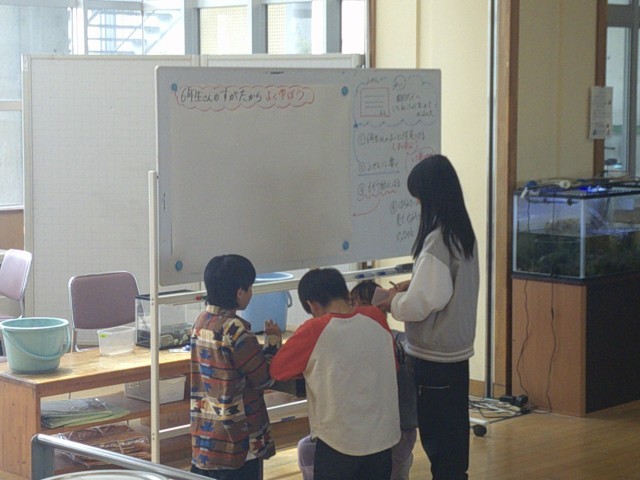 よいところを見つけた5年生が早速ホワイトボードの前に集合、ふせんに書いて貼り付けていました。今後、どんどん増やし、自分たちが目指したい姿を明確にしていきます。