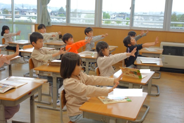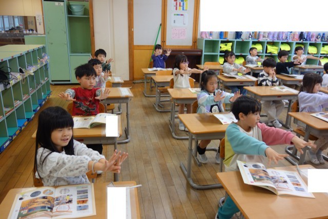 書写体操をした後、正しい姿勢と正しい鉛筆の持ち方で学習に取り組みました。